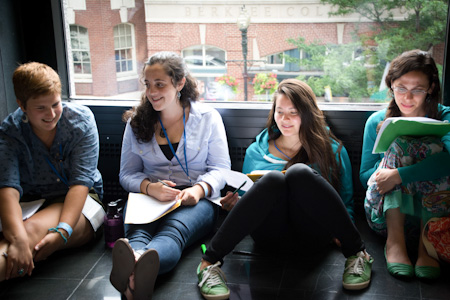 Friends share insights together in a small-group workshop session