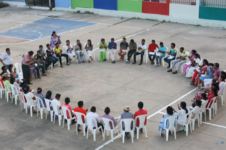 Discussions began in large groups and then broke into smaller ones in order to explore the ideas in light of local realities