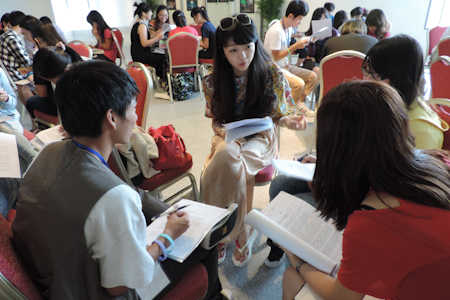 When the participants divided into workshops, one of the topics they discussed was how to avoid a fragmented approach to life that fails to see the connections among its various aspects. One young man from Taiwan stated: "When we think in dichotomies, we believe we have to choose one thing and sacrifice something else, and this presents a dilemma on what to do." He went on to say, "I now realize that all aspects of our lives work together and this increases our capacity!" A young woman from Japan explained how she has also come to see her life as a coherent whole rather than a series of choices, for instance, between study or service. She said she now sees that "service needs to be an integral part of our daily lives." Another youth remarked: “When things align themselves, they become more powerful. We’re seeing that now!”