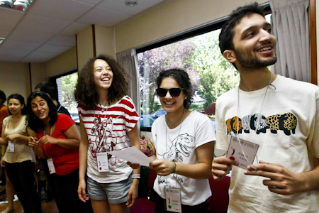The youth, who came from diverse backgrounds and were of varying ages, opened the conference with prayers and Writings from the Bahá’í Faith, read and sung in a number of languages. During group sessions, youth settled on the grass and under the cool shade of pine trees. The atmosphere that characterized the conference was at once festive and focused, with the participants demonstrating an eagerness to grasp the concepts that had been introduced in the conference materials. Despite the imposing heat, discussions on themes such as the unique period of youth and early adolescence remained centered, and the youth kept an outstanding level of motivation and commitment throughout the conference.