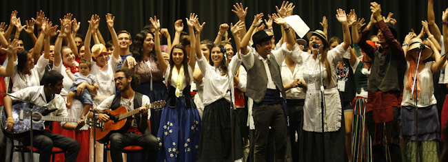 Artistic activities were present throughout the conference, sometimes emerging spontaneously during sessions, breaks, and meal times, and at other points planned and shared in front of large groups of their fellow participants. During the plenary sessions, all of the groups were invited to go on stage and use different forms of artistic expression to demonstrate the concepts that they had been learning about during the day. The presentations, were all followed by bursts of applause and cheering, reflecting the collective and participatory spirit that was apparent throughout the conference. At one point, around 80 youth arose from their seats to sing a song.