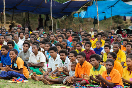 The valley of Aragip, the site of the second youth conference in Papua New Guinea, lies in the midst of the mountains in the remote interior of Milne Bay. The closest port of Sirisiri is a six-hour walk away, and the township of Alotau is another 10 hours away by boat and road transport. Yet almost 1,400 young people travelled for days to participate in the conference held on the grounds of a school in this valley from 20 to 22 September.