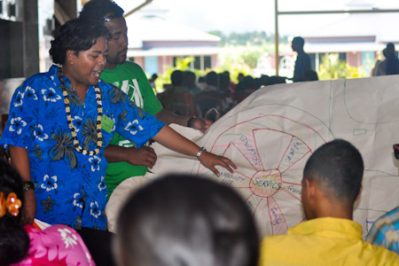 The rhythmic beat of a lali—a drum that is traditionally used to summon Fijians together—sounded the call to the evening program. Those gathered watched Frontiers of Learning, a documentary featuring the insights of four locations around the world engaged in the process of community building. A young man, moved by the spirit of cooperation and mutual support he saw demonstrated in the film, said, “One person was helped to serve, and was inspired to help someone else. We have to remember that in order to keep going.” Another observed, “You can see people working together. If we are working alone it is very hard to reach our goals but with encouragement we can achieve what the Revelation of Bahá’u’lláh wishes us to do.”
