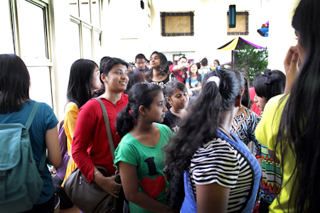 Several busloads of youth arrived at the same time