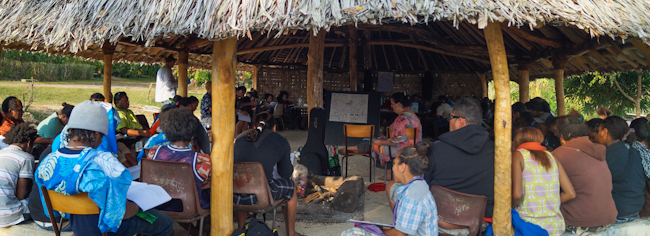 Travelling in planes, vehicles, on ships, and by foot, some 1,650 young people from French Polynesia, New Caledonia, Solomon Islands, and Vanuatu eagerly arrived, many over a week in advance, for the historic youth conference in Port-Vila, Vanuatu, held from 17 to 19 August. From Tanna, in southern Vanuatu, where the Universal House of Justice recently called for the building of one of the first local Houses of Worship in the world, three groups of 200 passengers—a significant percentage of all the youth living on Tanna—arrived in three separate ocean voyages. Two separate flights from the Solomon Islands, with 70 and 30 participants respectively, arrived three days apart. And the day before the conference, 300 youth from the islands of Santo and Malakula, in northern Vanuatu, docked in Port-Vila’s harbour, after a 26-hour journey on a cargo ship.