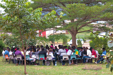 Inspired by the profound ideas they were discussing, a group of youth at the conference in Yaoundé spontaneously composed a song based on the words of ‘Abdu’l-Bahá. The joyful notes rose and fell as they sang, “No deed in the world is nobler than service to the common good … The highest righteousness is to arise and devote ourselves to the service of the masses.”