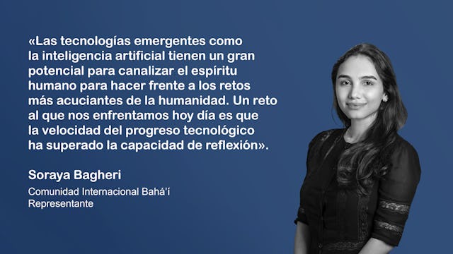 Soraya Bagheri, representante de la CIB y moderadora del evento, declaró: «Las tecnologías emergentes como la inteligencia artificial tienen un gran potencial para canalizar el espíritu humano para hacer frente a los retos más acuciantes de la humanidad».