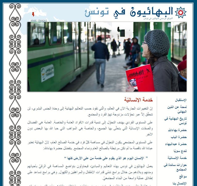 به عنوان مثال در تونس، نخستین وب سایت رسمی بهائی آغاز به کار کرد و از آن زمان، بهائیان شاهد فرصت های فزاینده ای در میادین مختلف برای مشارکت در پیشرفت و توسعۀ کشور بوده اند. این وبسایت ها یکی از راههایی هستند که جامعه توانسته است از مجرای آن، روش های بنای اجتماعی مبتنی بر صلح و عدالت را با شهروندان خود در میان بگذارد.